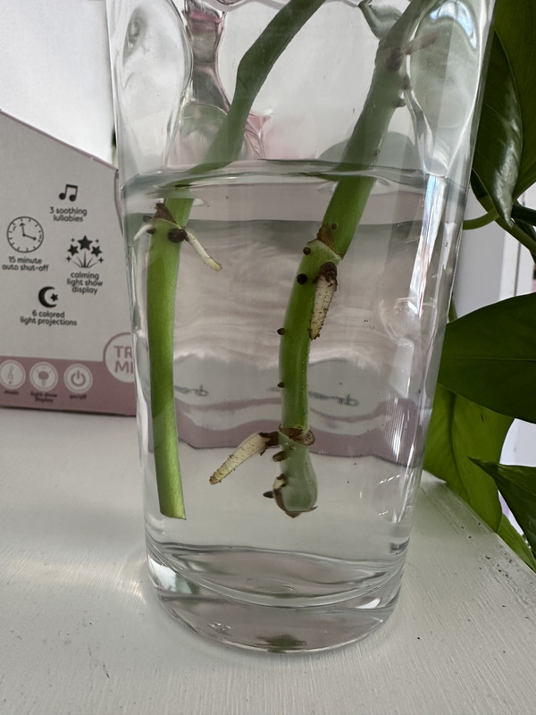 Here is the other one I put in water right away and is doing better. How much do you let the roots grow before putting it in soil? And would you recommend changing the water every 1-2 days? It’s hard to know what advice to listen to.