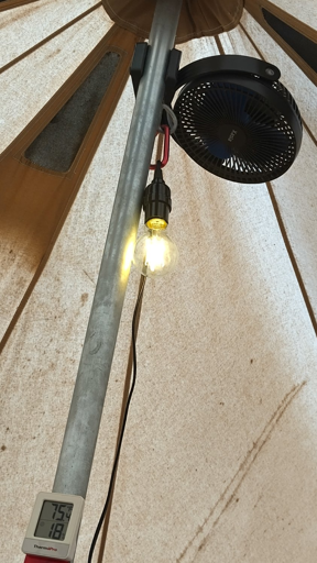 The string fixture had come with home ac outlet plug, so that needed to be cut off and replaced with a DC comparable outlet plug. Theres a few options but for now I choose a car cigarette plug male. I wired it together and plugged it into the 12v system, the bulb works nicely. Its daytime now so excited to test out and see how much of an improvement it made.