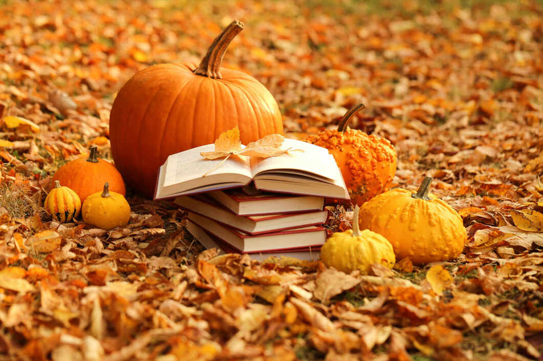 Avatar is a red panda. Header shows books and pumpkins sitting on autumn fallen leaves.